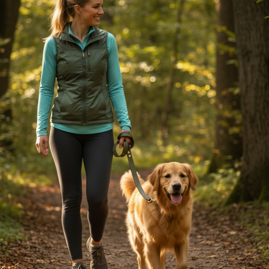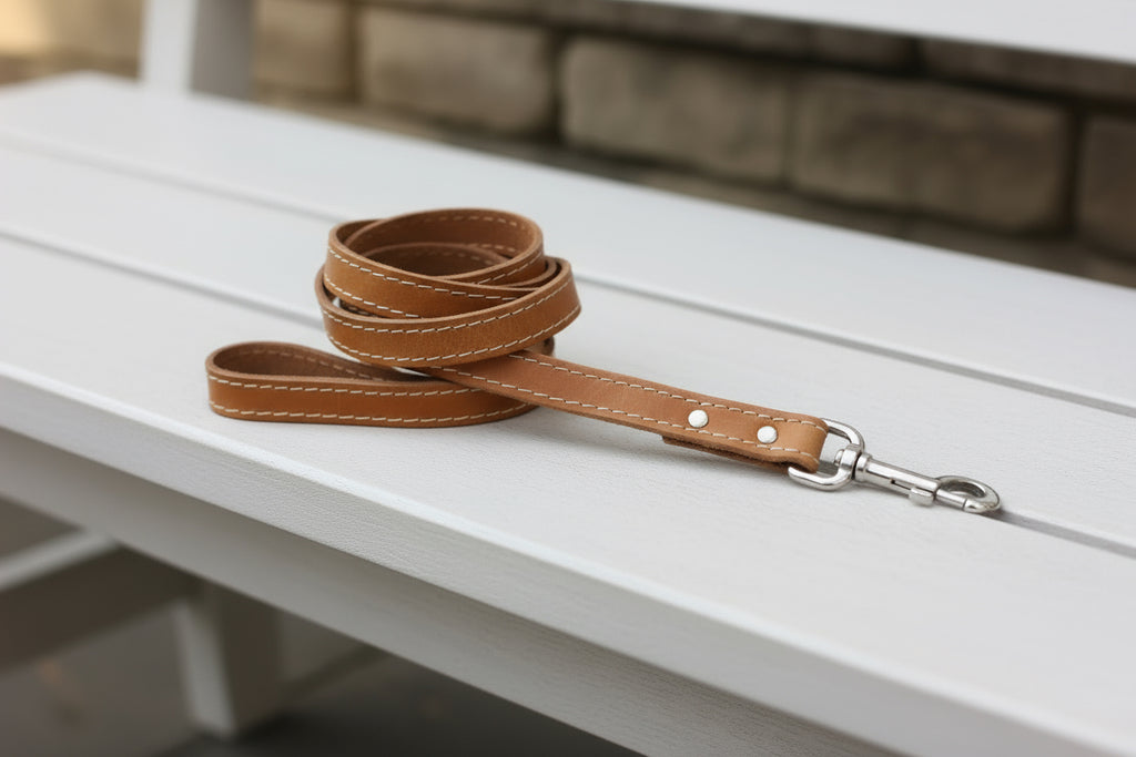 Crafted from genuine leather with durable stitching, this timeless leash combines everyday function with lasting style. Built to age beautifully, it’s ready for a lifetime of walks and adventures together.