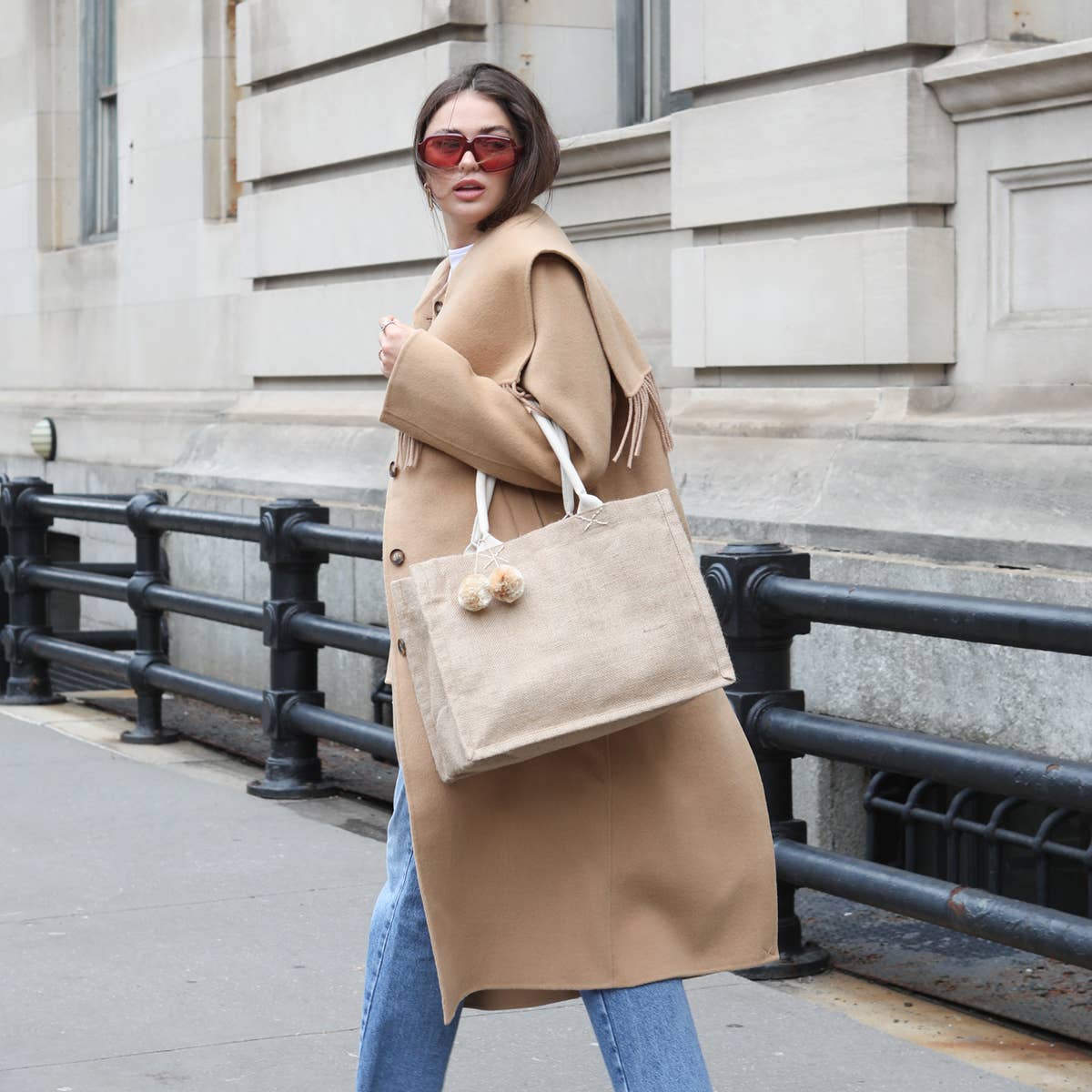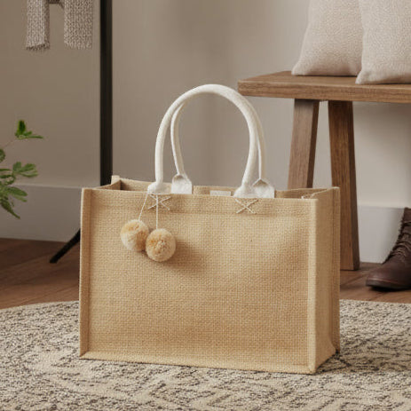Material: Natural burlap fabric, canvas lining, cotton handle